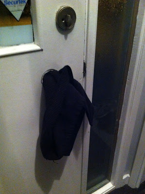 When I suggested that a tea towel jammed into the hole in place of an installed doorknob was less than ideal, he looked at me like I was insane, "Are you worried a tiny robber will stick his hand in and unlock the deadbolt?" I said, "No, I am worried that I need to explain to you why it is ridiculous to use a dish towel as a doorknob." What I was really worried about was that in that moment, I couldn't think of a single valid reason why we couldn't just use the towel to plug the hole. PHD has broken my common sense. So I went to bed and had dreams about eyes peeking in the hole, or things slithering in.